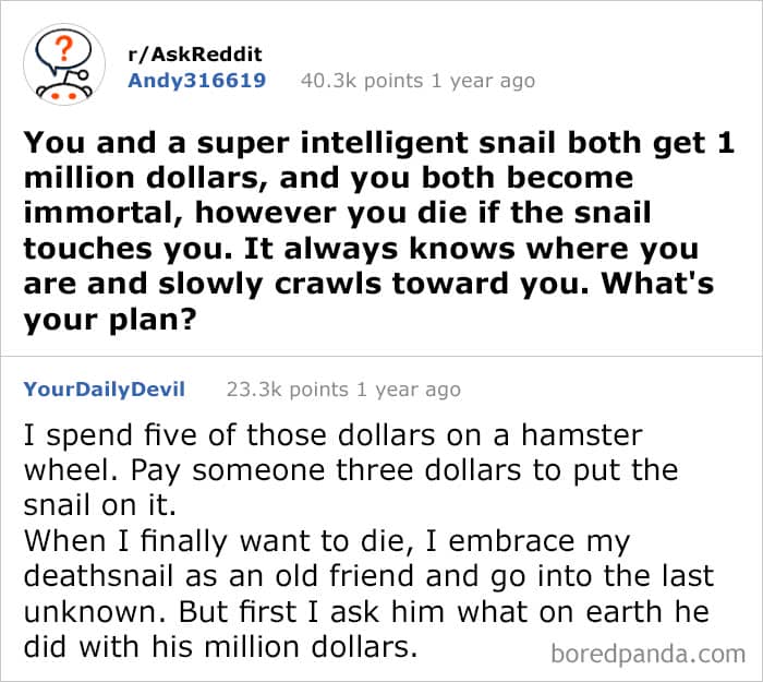 Want to know how to make friends? Best ask Reddit! Or what was ruined because too many people started doing it? Funny Reddit users will answer! If you’re not afraid of slipping down the Reddit advice hole, check the compilation below at your own risk – you might get addicted to these top Reddit questions and answers quickly. So, scroll down to get the answers and upvote your favorites!