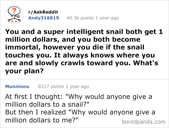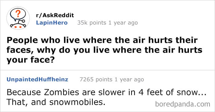 Humans are curious creatures and sometimes have more questions than answers. Over the centuries, however, we’ve accumulated quite a bit of knowledge. So if someone needs a quick fix of information, they can always open the Bible or an encyclopedia. Or Reddit. More and more people are turning to /r/AskReddit in search of the truth, and while the responses they get don’t always seem scientifically sound, they’re as hilarious as the funny questions themselves.