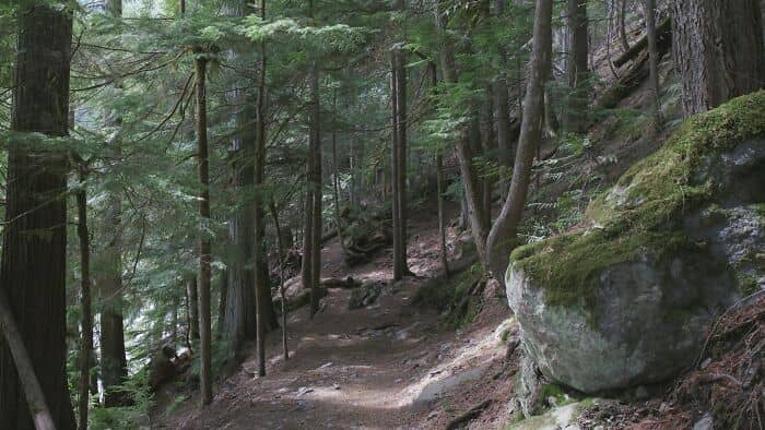 About 20 minutes in, I saw something strange about 50 meters off: a finely polished, light-colored wooden coffin. I was a little weirded out to say the least and waited until I got closer for a better look. I rounded a corner where several old tree stumps blocked my view, only to find that the coffin had disappeared. Where it should have been was a clump of ferns. Odd.