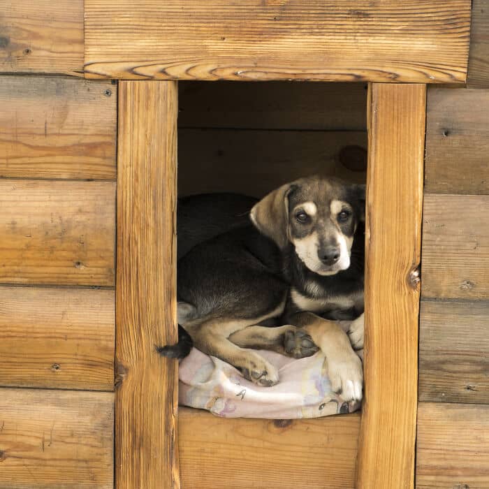 My mother is terrified of animals. However, she allowed us to have an outside farm dog. We built him the coziest dog house in our shed, insulated inside and out, complete with a giant heat lamp but we only had straw we could put in it for his bedding.
