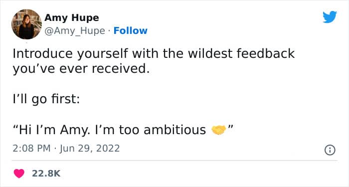 Content design consultant Amy Hupe started off a viral Twitter thread when she shared the most ridiculous feedback she had ever received in a creative way. She asked people to introduce themselves with the offensive things clients, coworkers, and managers had told them when trying to be “helpful.” So upvote the worst examples and comment your own terrible feedback stories below.