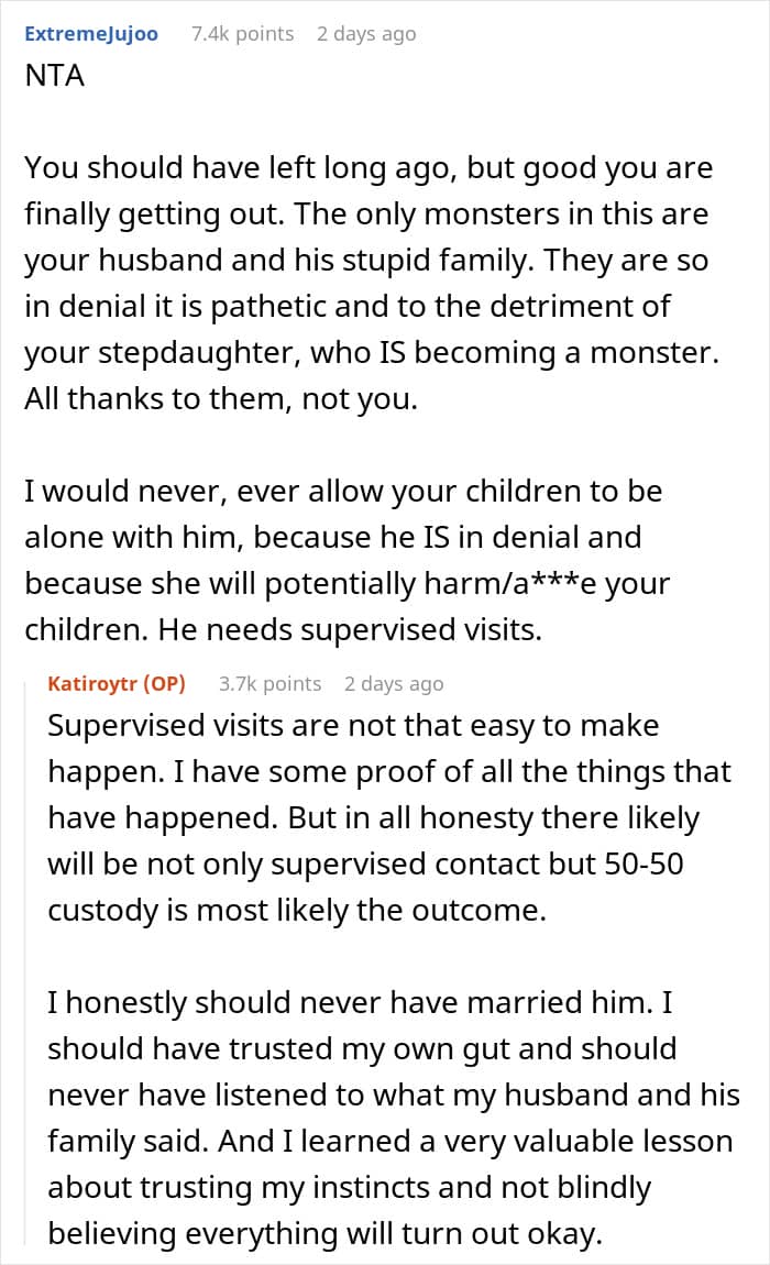 However, it had been a difficult few years for the woman, who not only endured her stepdaughter’s hostility but also her in-laws’ constant criticism. At that point, walking away was the only option for her to protect her peace, something she also deserves.