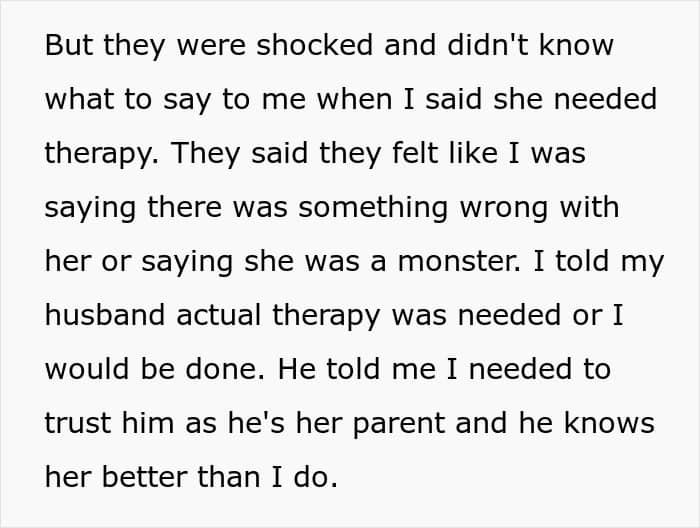 For this woman, however, things got out of hand. The root of her problem came from her spiteful stepdaughter, whom she believed needed therapy. The conflict reached its boiling point when her husband refused to have his daughter seek treatment, as she also dealt with the incessant vilification from her in-laws.