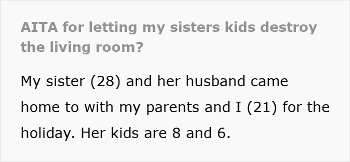 Today’s Original Poster (OP) found herself unexpectedly in charge of two energetic children, without being asked, and witnessed firsthand how quickly unsupervised play can spiral out of control. Still, she refused to take responsibility for what they believed wasn’t hers to begin with.