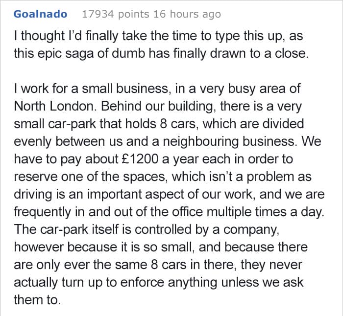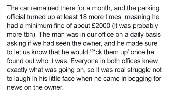People get really creative when it comes to dealing with asshole drivers but this rude Londoner was so annoyingly disgraceful, he needed a lesson he wouldn’t forget. Not only did he steal the same parking space day after day, he ignored multiple warnings from the guy who owned the lot.