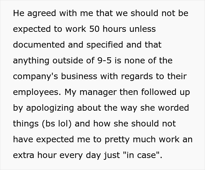 This employee recently shared online how his manager had unrealistic expectations for his working hours