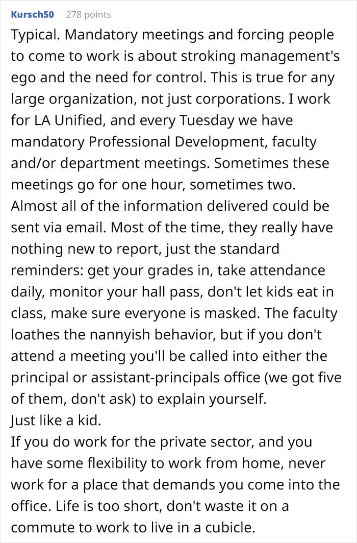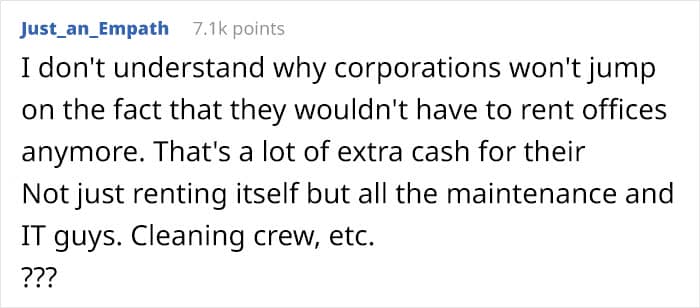 Other redditors were happy that the OP is now in a better place in his career and thought that their coworkers were right to quit if they felt that working from an office was not for them. What is your take on the story? Do you think this will become common and do you think that companies will adjust their working from the office policies? Let us know in the comments!