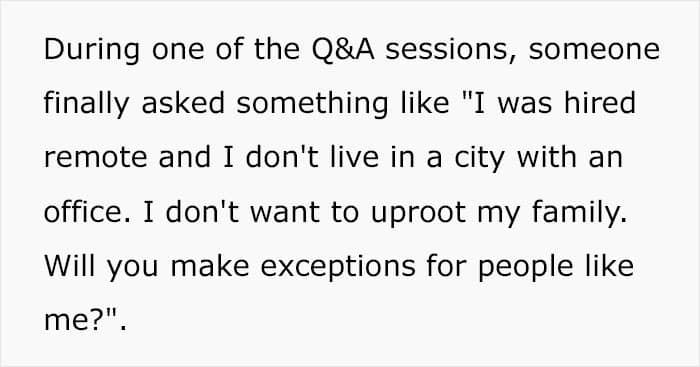 The CEO didn’t care if their employees would have to move with their whole families and were promised a flexible policy about working from home