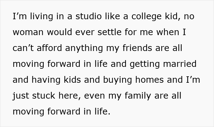 At first, his family helped him financially and emotionally while he adjusted to his new reality. But over the past few years, that support gradually faded. His brother, who is now a successful lawyer married to a doctor, moved forward with his life. Meanwhile, the OP struggles to cover basic living expenses and remained largely isolated and feeling stuck.