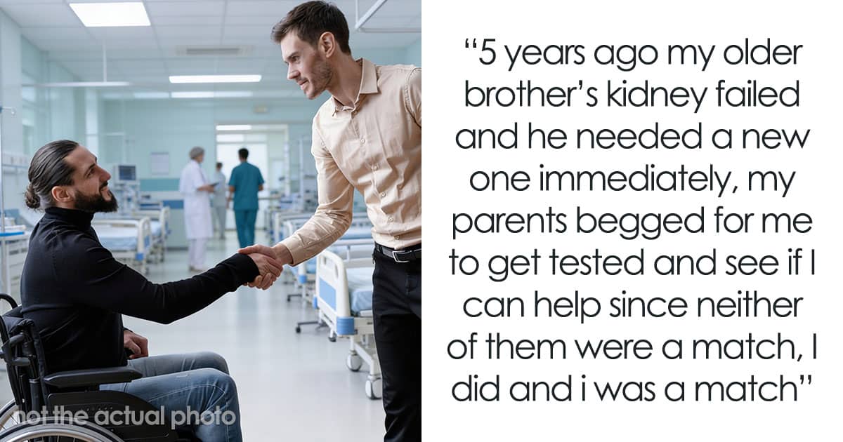 Five years ago, the OP’s older brother experienced kidney failure and urgently needed a transplant. Neither of their parents was a compatible donor, which led the family to ask him to get tested. He agreed to donate his kidney, the transplant was successful, and his brother recovered and went on to live a healthy life. The OP’s health journey didn’t go as smoothly, though.