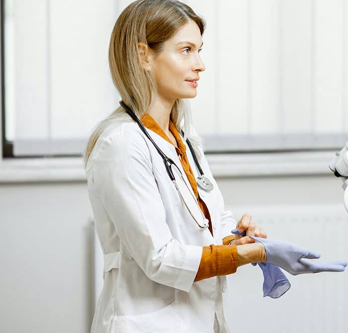 Laid on my side with my back to the door for a prostate exam. Heard people walk by talking while a finger was in my bum and realized the door was open.