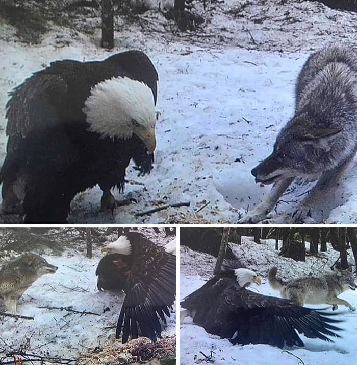 #2 Bald Eagle Size vs. Grey Wolf, Caught On Trail Cam