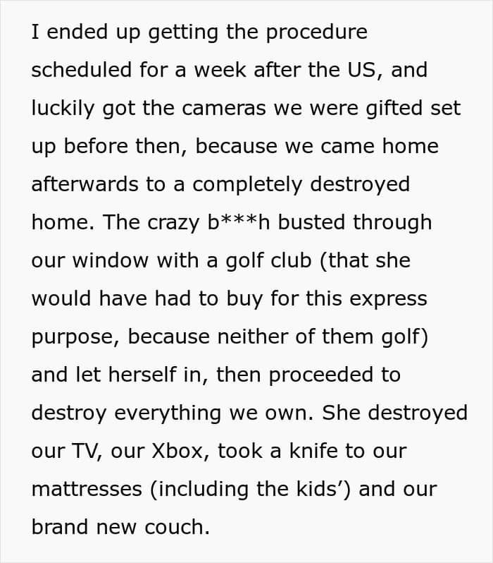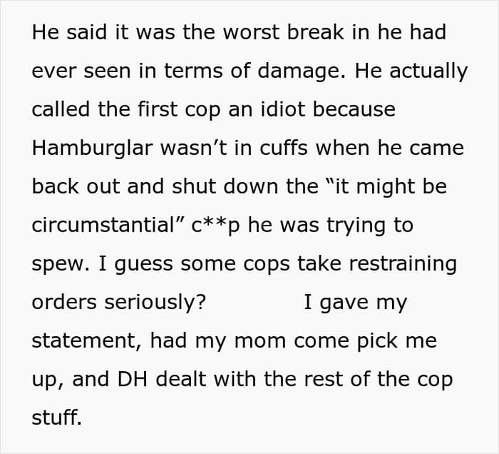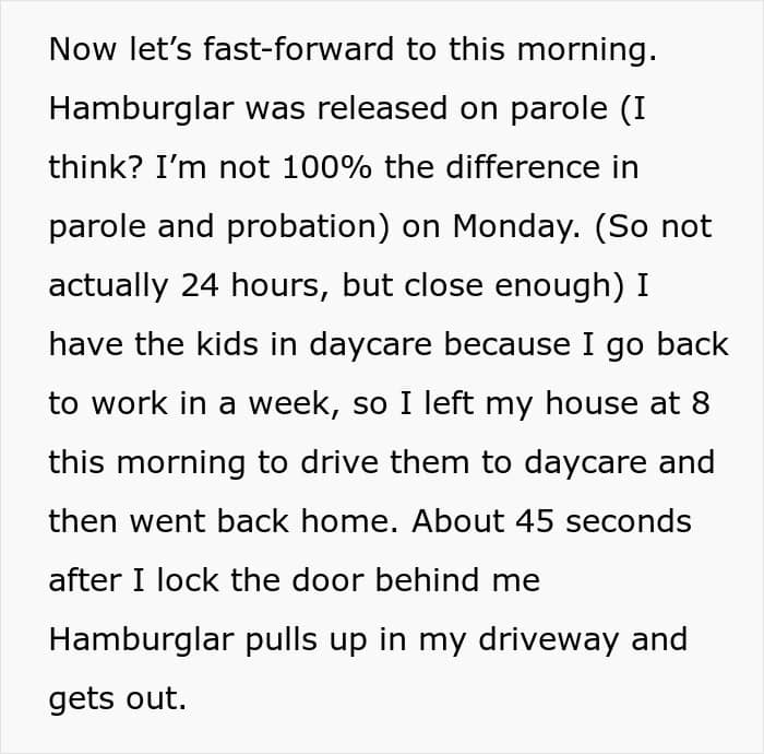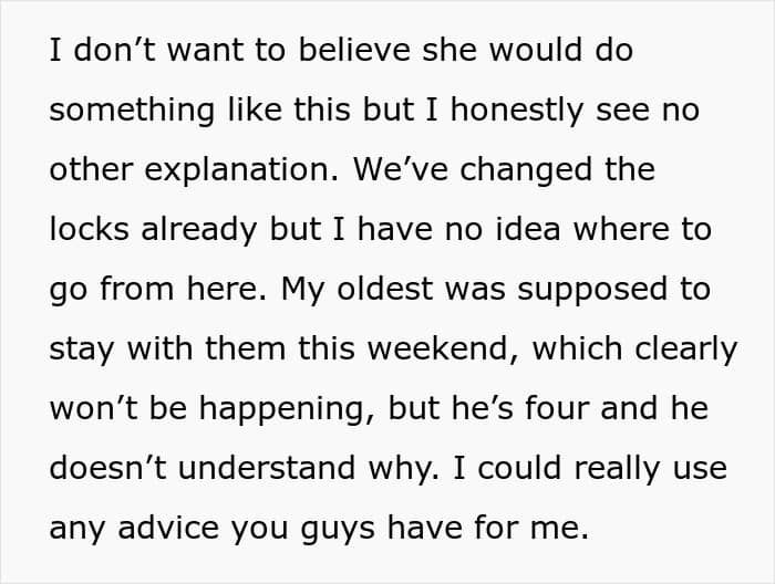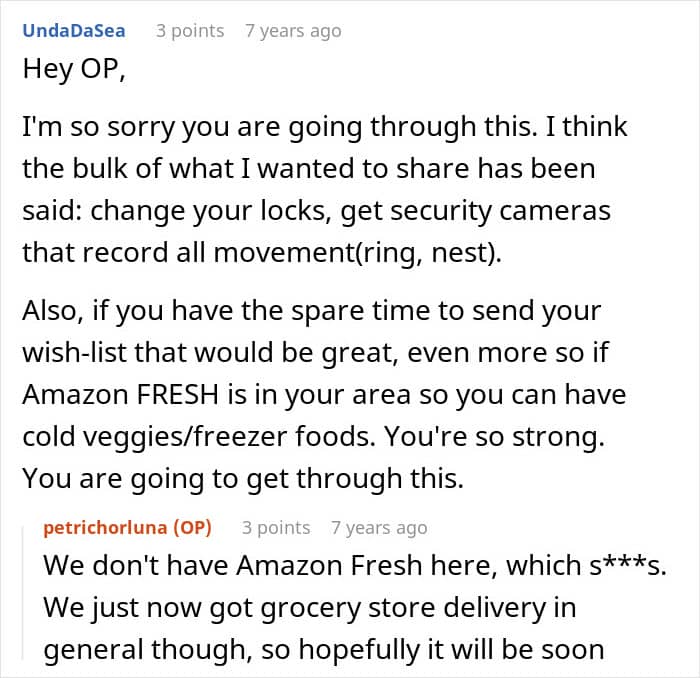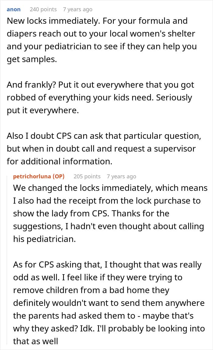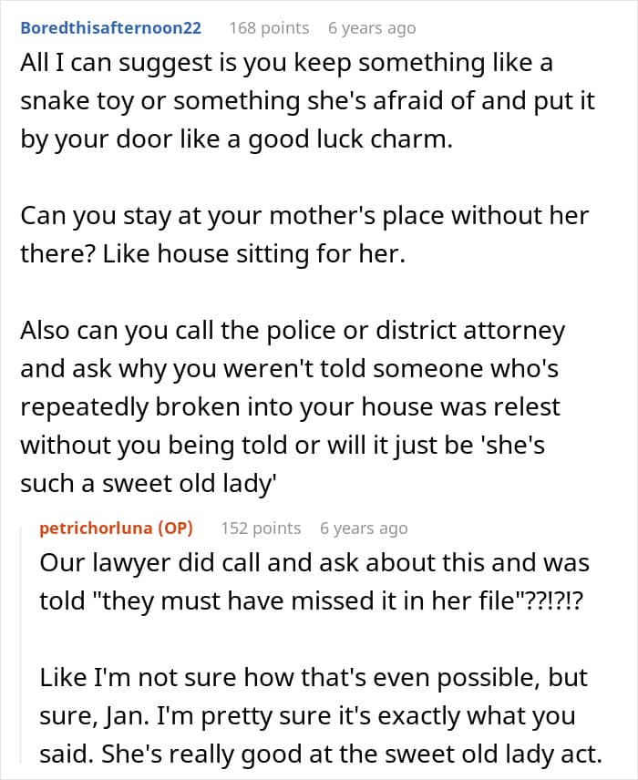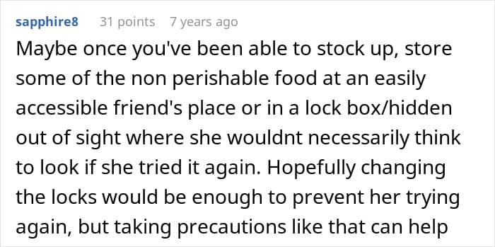 “Hopefully changing the locks would be enough to prevent her from trying again,” invested commenters wrote