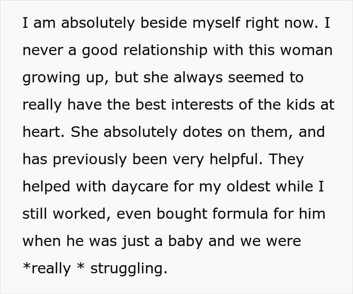 RELATED:A mother of two had to deal with her unhinged stepmom’s threats to involve CPS