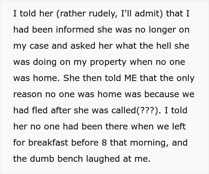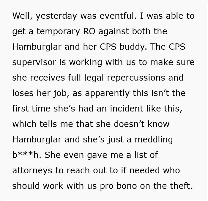 In her next mini update, the mom detailed how this wasn’t the first time the rogue CPS worker crossed professional boundaries