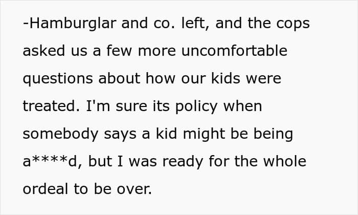 In the “Hamburgler” saga, the woman’s husband comes across as a caring, doting man. Perhaps he’s not home that often because of his work, but many readers probably thought that she had a good anchor and source of support in him.