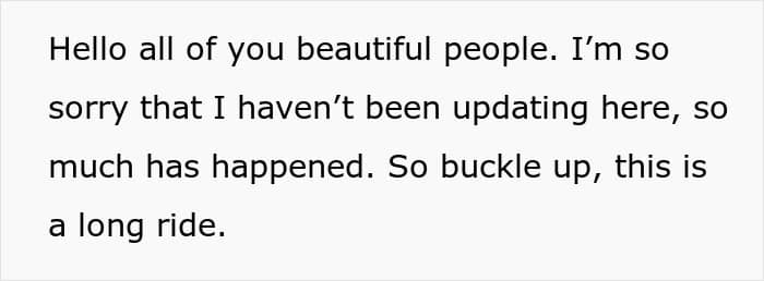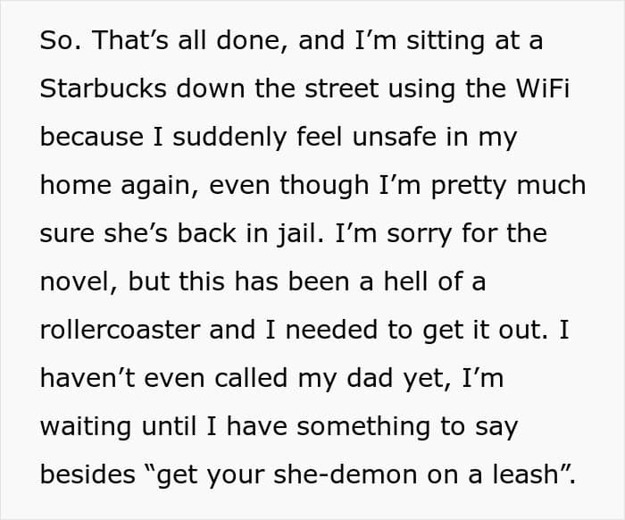 In her last update, the woman discovered her stepmom didn’t remain in jail