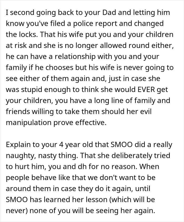 Commenters urged the mom to hold her father accountable and rein in the evil stepmother