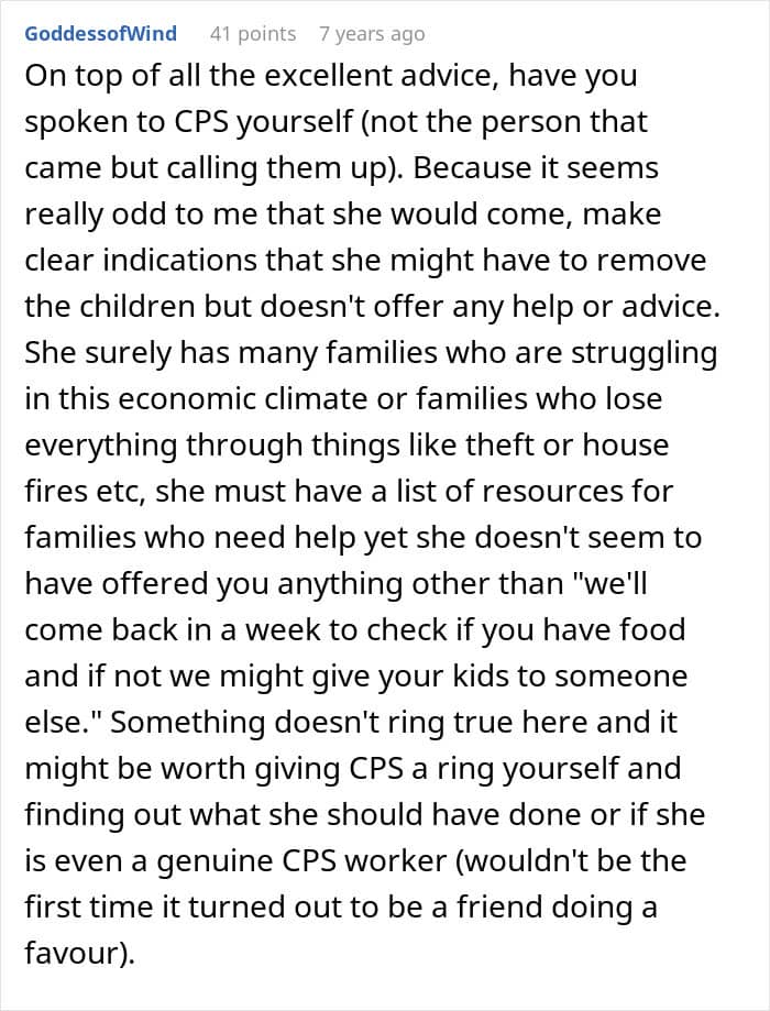 It all started when she saw the parents as “unfit” because they had trouble getting groceries