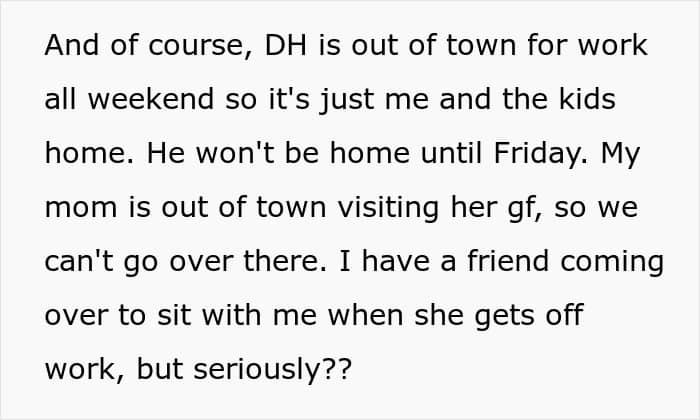 As for the husband, he went to stay with his mother in another state. “The last couple weeks have been hard as hell, and he’s been super nasty, and I’m still not even sure how to go about getting a divorce in Louisiana, but at least I don’t live with someone who thinks I’m making up a disease I’ve had the entire time I’ve known him just so he doesn’t scream at me about dinner,” the Redditor wrote.