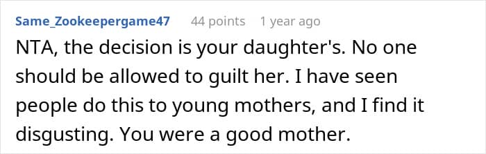 Unfortunately, not all family members were supportive of this teen’s choice to become a mother. Especially the grandmother, who tried shaming and guilt-tripping her granddaughter into giving up the baby to her infertile aunt, for which she got kicked out of the house.