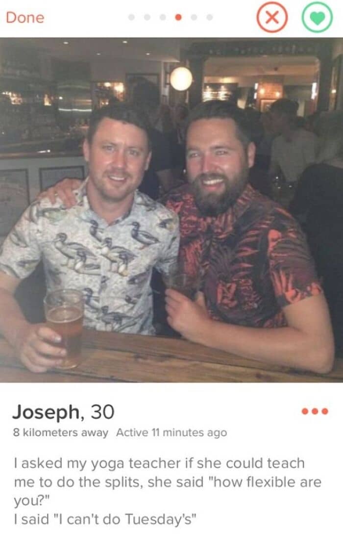 Showcasing pictures and bios that range from oddly charming to completely unhinged, the Facebook page “Funny Tinder Profiles” has plenty of examples of what they look like in the wild. When it comes to first impressions, for better or worse, personality is queen.