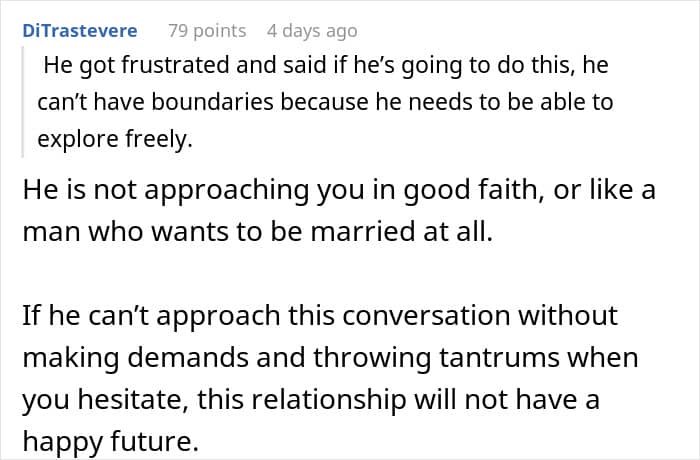 The poster felt blindsided by her husband’s declaration and tried to set boundaries around his dating, but she had to keep compromising as he’d throw a fit