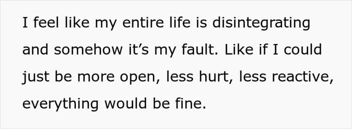 Over time, the poster began feeling like her life was falling apart and that she didn’t know what to do because he kept making her feel like it was all her fault