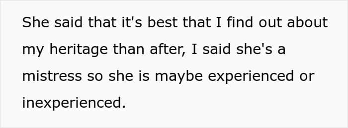 In fact, furious at the insult, the OP called the new sister-in-law out as a “mistress” who was either experienced or not, and that was when his mother pulled him aside and asked why he’d say that out loud in front of everyone. He responded with a loud voice that “a second-rate mistress” shouldn’t be questioning his wife or having an affair with married men.