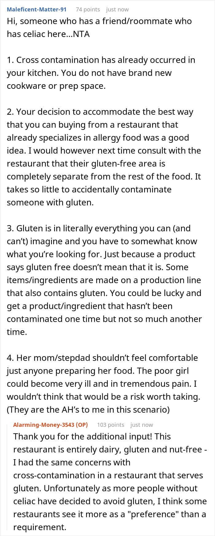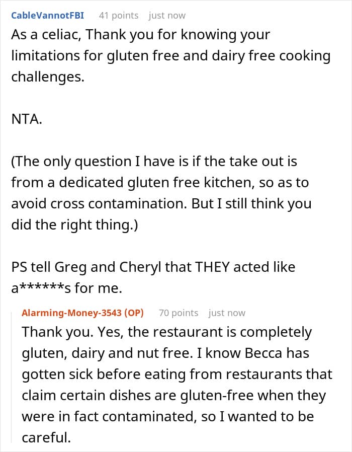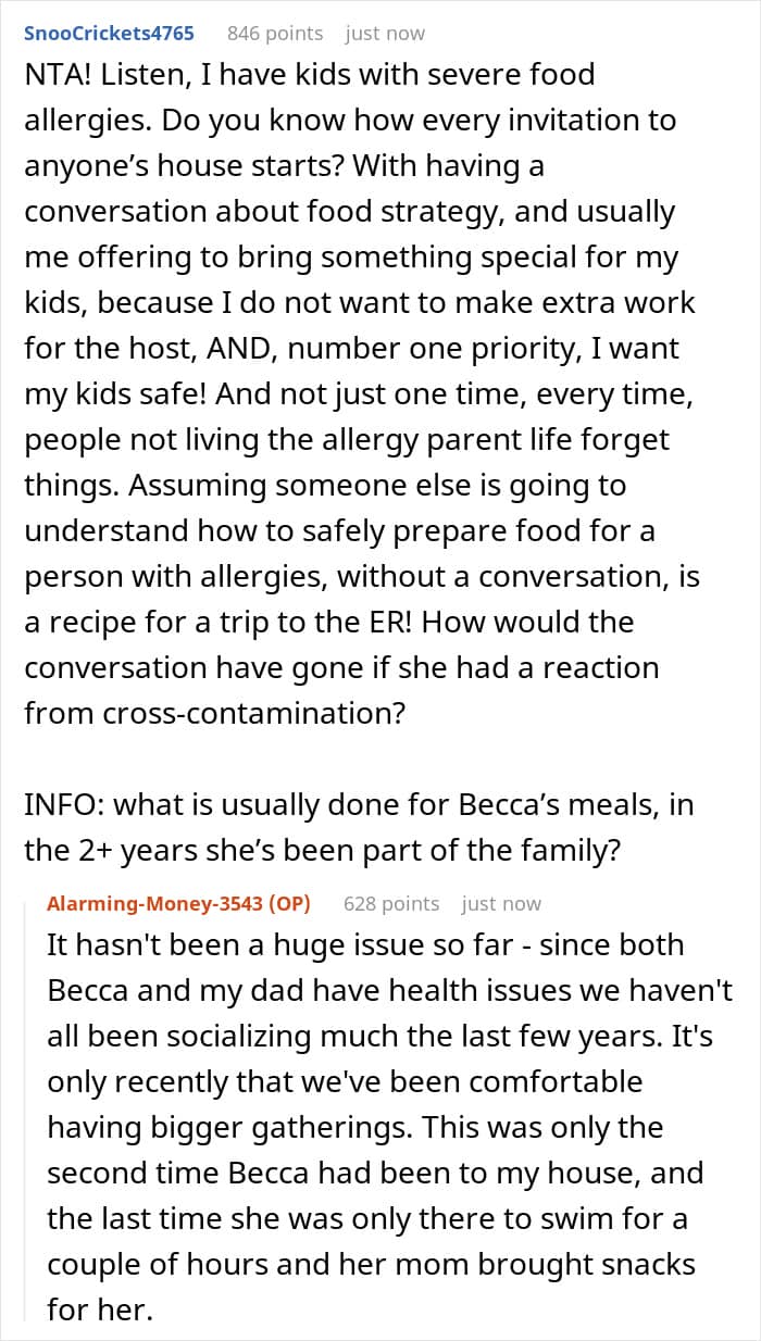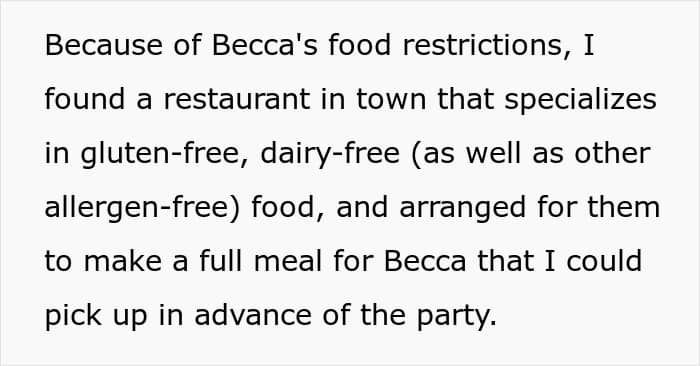 Do you think the OP still could have put in more effort in order to not make Becca feel left out? Do you think such treatment could have made the girl feel left out when she knows she can’t eat the same as everyone else because of her allergies? What do you think of her mom and stepdad’s reaction? Let us know your thoughts in the comments.