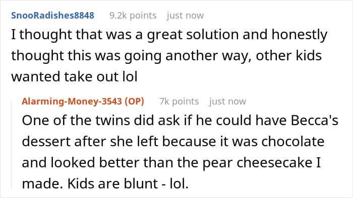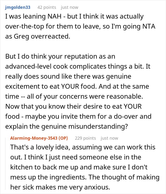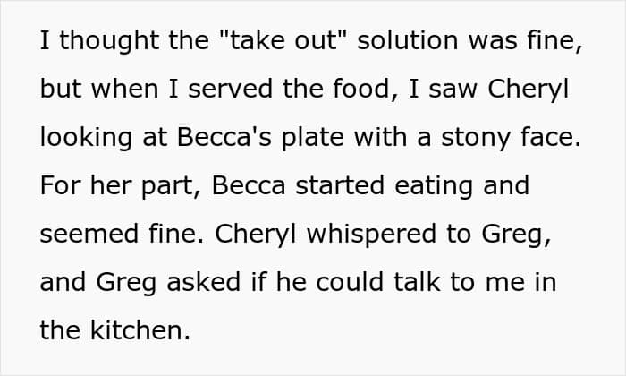 That really upset the OP because she didn’t even think that the girl’s parents would expect her to cook, as she already once refused to bake a birthday cake for Becca and explained that she doesn’t have the measures to ensure the food is safe.