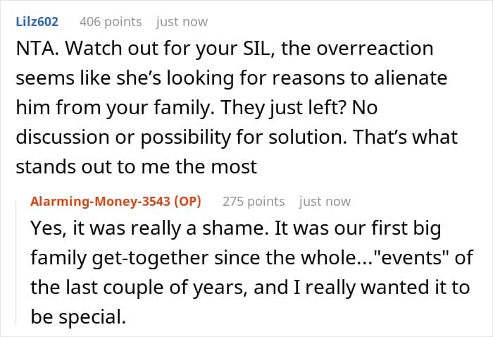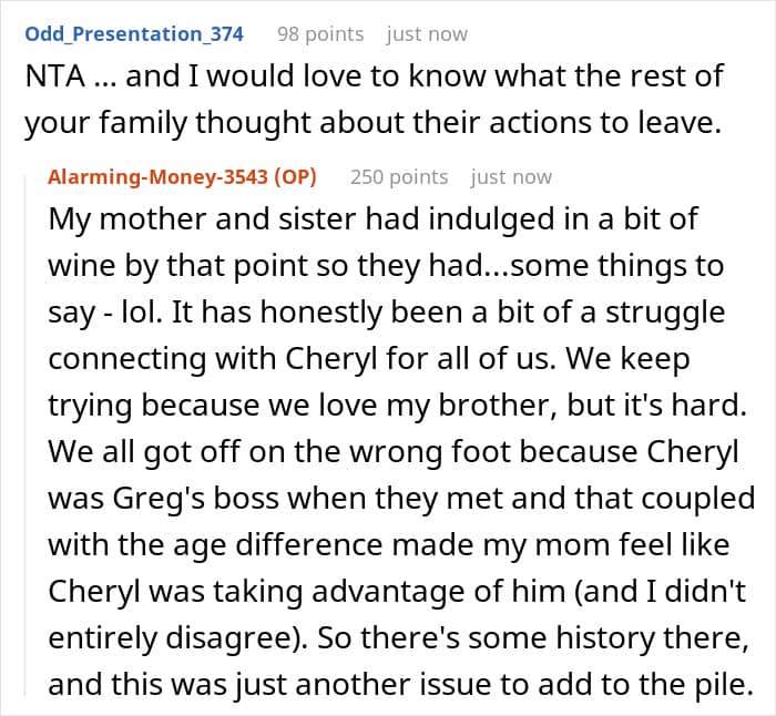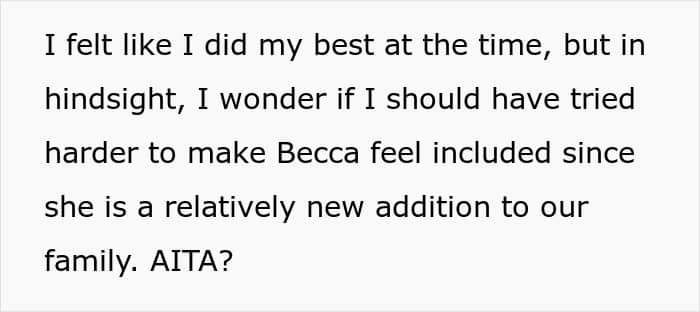 After the confrontation, the brother and his family left, which brought the whole family’s mood down. The woman can’t help but wonder where she went wrong, as she was just trying to look out for Becca but was accused of not accepting her as family instead.