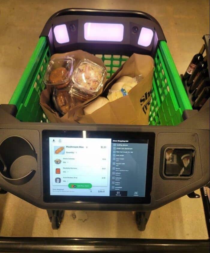 #81 Amazon Smart Grocery Cart Portrays My Alexa Shopping List To The Right Of What Is Already In The Cart