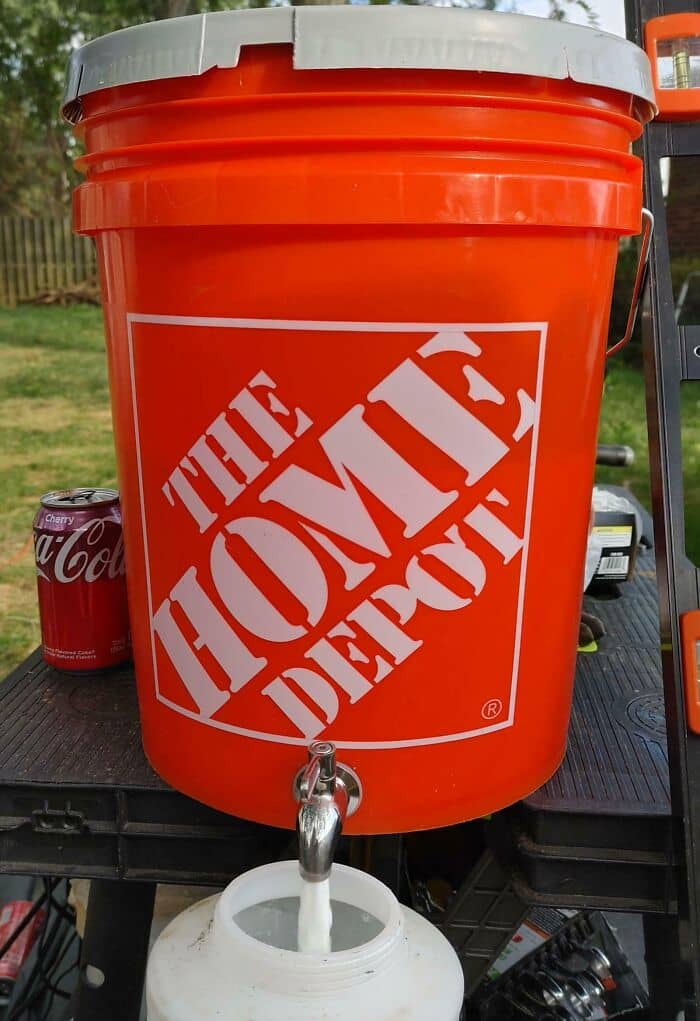 #66 Just Built A New Privacy Fence And Now I’m Sealing It. Put A Metal Drink Spigot On A 5gal Bucket To Refill My Sprayer Tank Much Easier. Worked Like A Charm