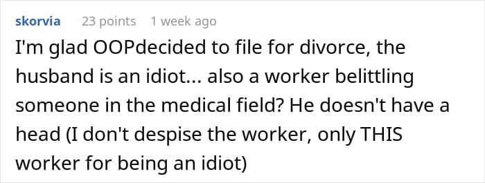 Readers applauded the wife for her decision and called out her husband for his behavior