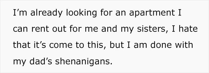 “My dad decided to be petty and keep some valuables that he gifted me, but he didn’t make much of a fuss about anything else. I’m currently looking for another job that pays more to support myself and bring a big portion for bills. My savings should cover me for a good three months so I’m not too worried about that,” the redditor shared.