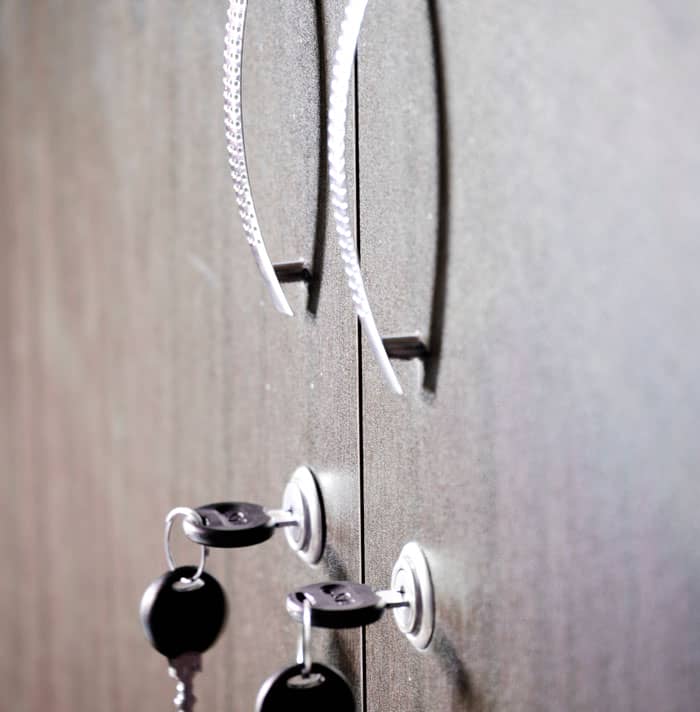Three locks on the basement stairs door and the smell of formaldehyde and air freshener.