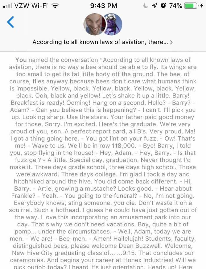 #46 I Definitely Did Not Change The Name Of My Friends Group Chat To The Bee Movie Script… Definitely Didn’t