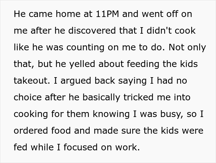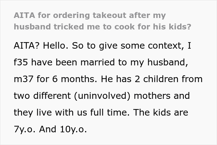 This woman was tricked into cooking for her stepchildren while she was working from home, so she simply ordered takeout