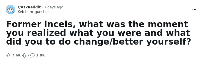 This time, We wants to highlight the stories that made former incels realize that the community is hella toxic and made them leave. We’re bringing you the experiences that people shared when one netizen asked, “Former incels, what was the moment you realized what you were and what did you do change/better yourself?”