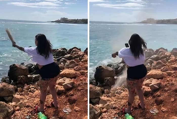 #4 The Influencer Boasted That She Was Swimming Among “Sea Foam”, But In Reality She Was Swimming Close To The Mouth Of A Drainage Pipe