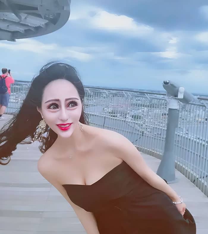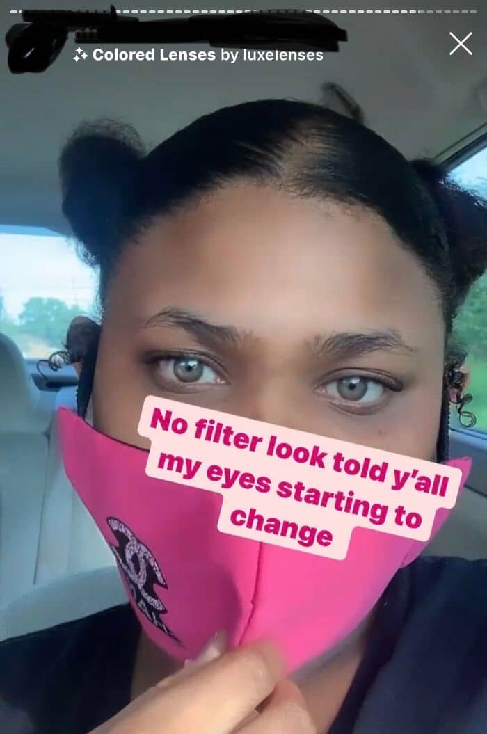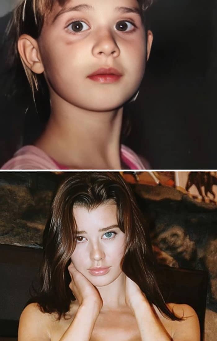 She wore one contact lens until her father exposed her, posting a childhood photo of her with her natural eyes. Then she went to India to have a dangerous operation to colour one eye blue.