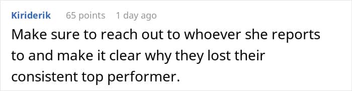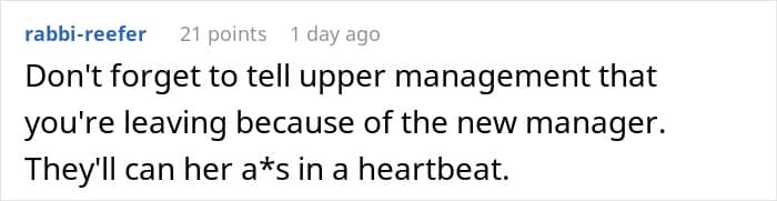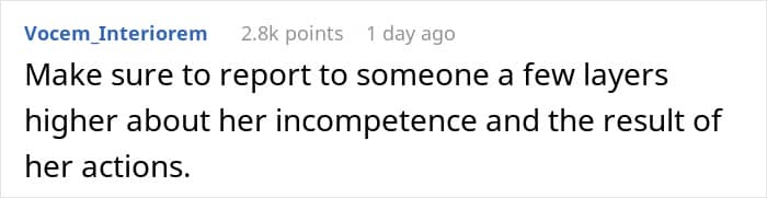 Others provided advice for the employee to ensure that this manager learns her lesson