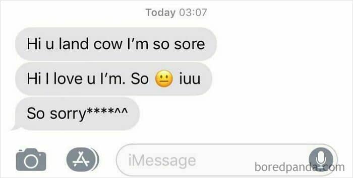 #22 Made Sure My Friend Got Home Safely After A Night Of Drinking And She Sent Me This. I Think She Meant To Say “Hi I Love You I’m So Sorry” LOL