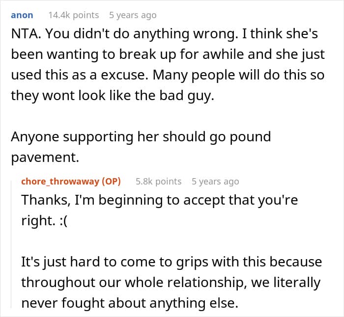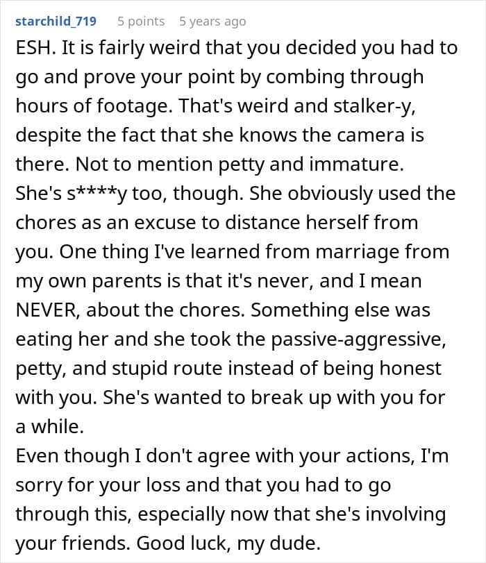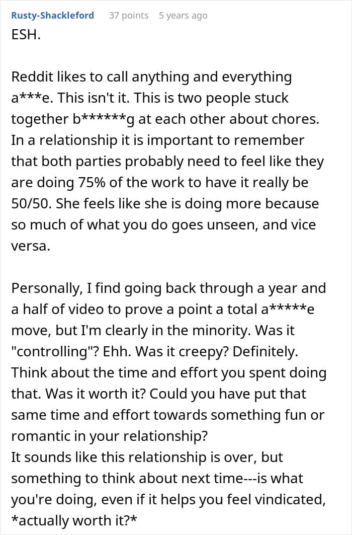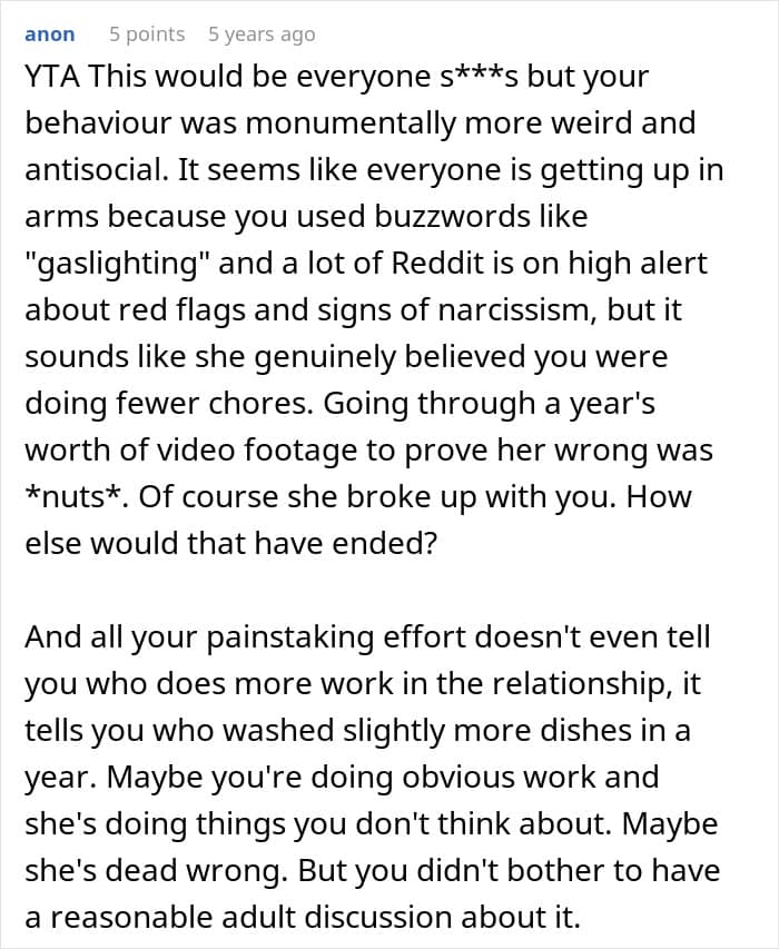 But there’s an adjustment period any time you move in with someone new, and unfortunately, some couples can’t survive it. When one man was accused of not contributing equally to household chores, he decided to find video evidence to prove that he had been pulling his weight. But his plan ended up backfiring, so now, he’s asking the internet for advice. Below, you’ll find the full story that he shared on Reddit.