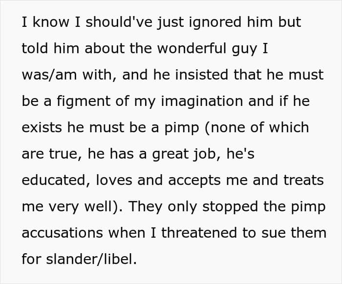 In the comments, readers said they doubted the woman had an actual case for slander or libel, but that she should stay away from her problematic parents anyway