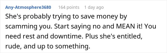 But well done on this queen for setting her boundaries! Take Root Therapy suggests that when a family member consistently disrespects your time, energy, and resources, the only healthy response is to create distance. Her “I’m done” declaration was one we can all take notes of, choosing to save her own sanity before things got out of hand.