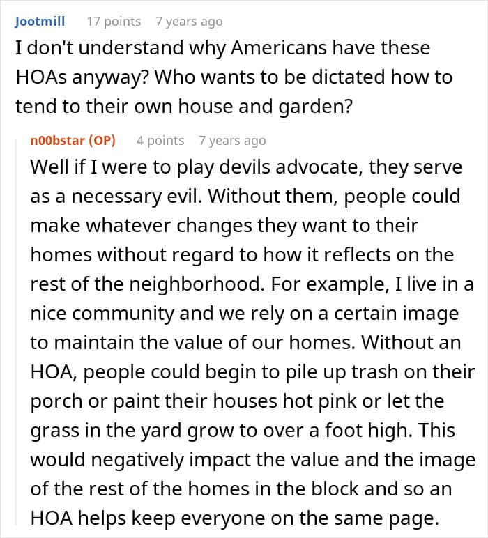 Here, too, commenters massively thanked the original poster for a smart and witty story of petty revenge. Furthermore, people couldn’t help but note that HOAs are the scourge of many communities, albeit in many ways a necessary evil. So now, dear readers, please feel free to leave your comments below, and maybe share your own stories of confronting entitled HOA higher-ups as well.