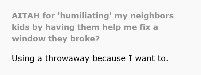 The author of the post is a 25-year-old man who once found one of his door windows broken by the neighboring kids
