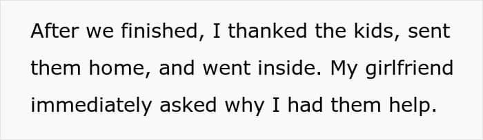 While the repairs were underway, the author’s girlfriend arrived and saw the whole group. After the kids left, she called him out for allegedly “humiliating” them. The OP was incredibly surprised, and during the discussion, it became clear that the woman had perceived the picture as “racist.” The whole point is that the author is white and all the kids were Black.